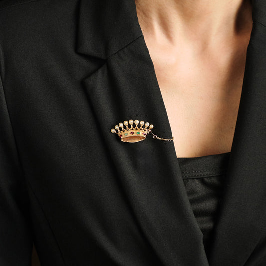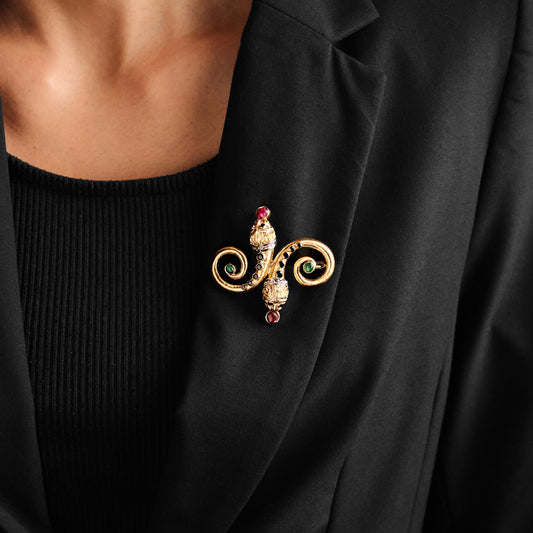 Brooches have a long-standing role in jewellery, serving as prominent accessories since ancient times. They gained popularity in the Middle Ages as decorative additions to clothing. During the Renaissance, brooches became more elaborate, often featuring gemstones and enamel. The Victorian era brought sentimental designs, and in modern fashion, brooches remain a versatile accessory with diverse styles and symbolic elements.