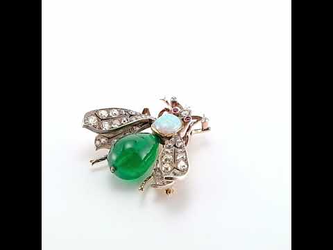 Stone Details: Diamonds 3.8 cts approx., Opal, rubies and green glass