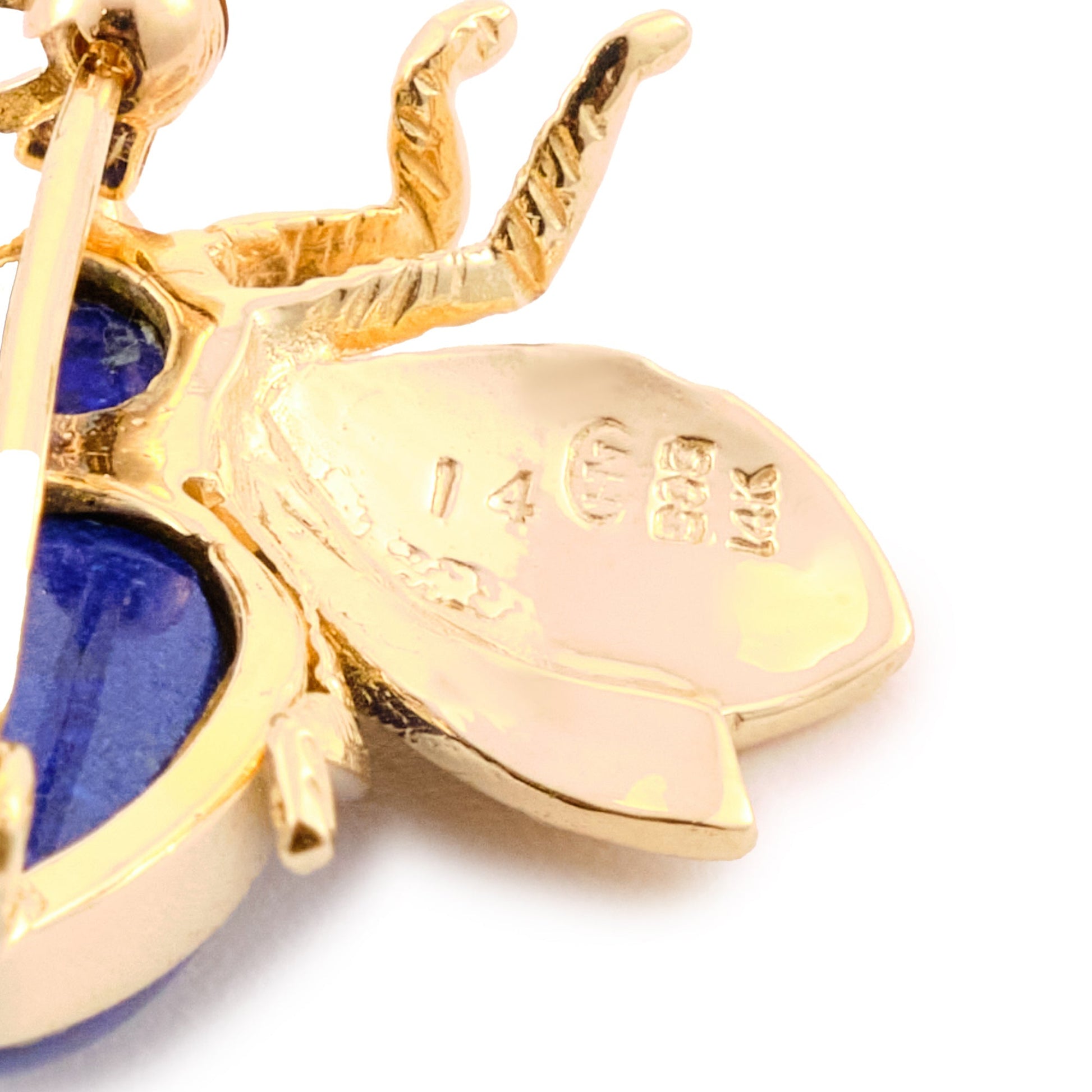 14 Kt yellow gold bumblebee brooch set with lapis lazuli