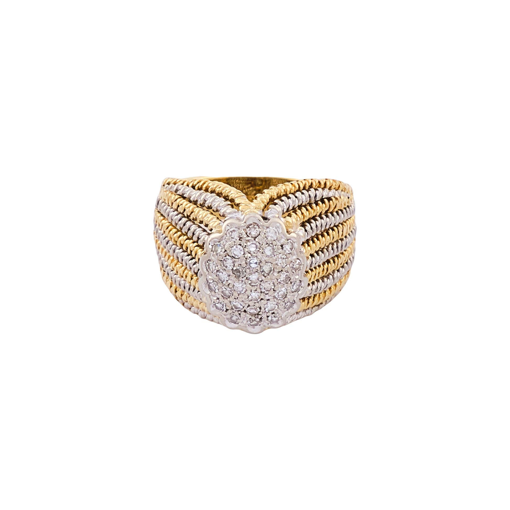 18 Kt yellow and white gold rope twist style ring set with diamonds
