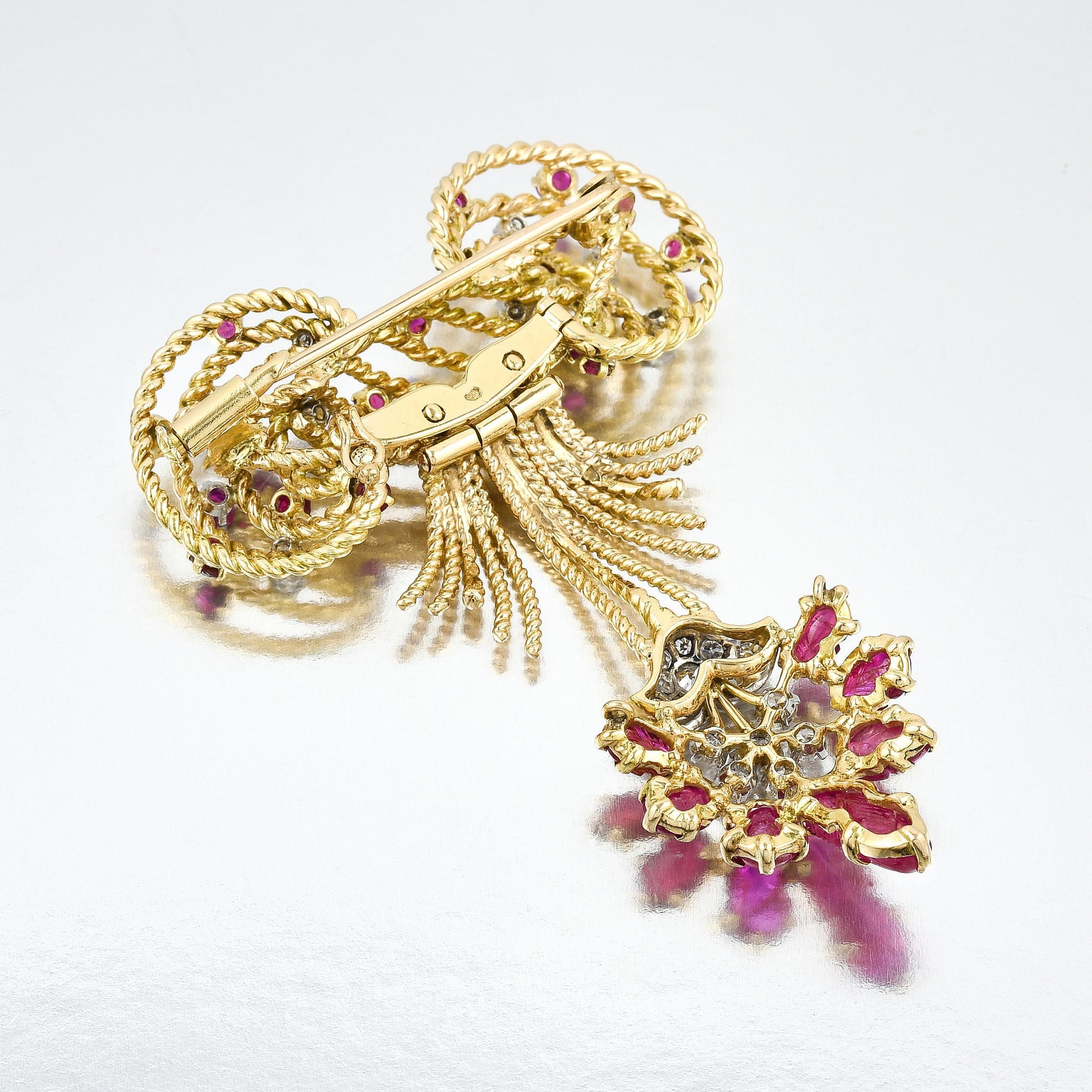 18 Kt yellow gold bow brooch set with Rubies and Diamonds