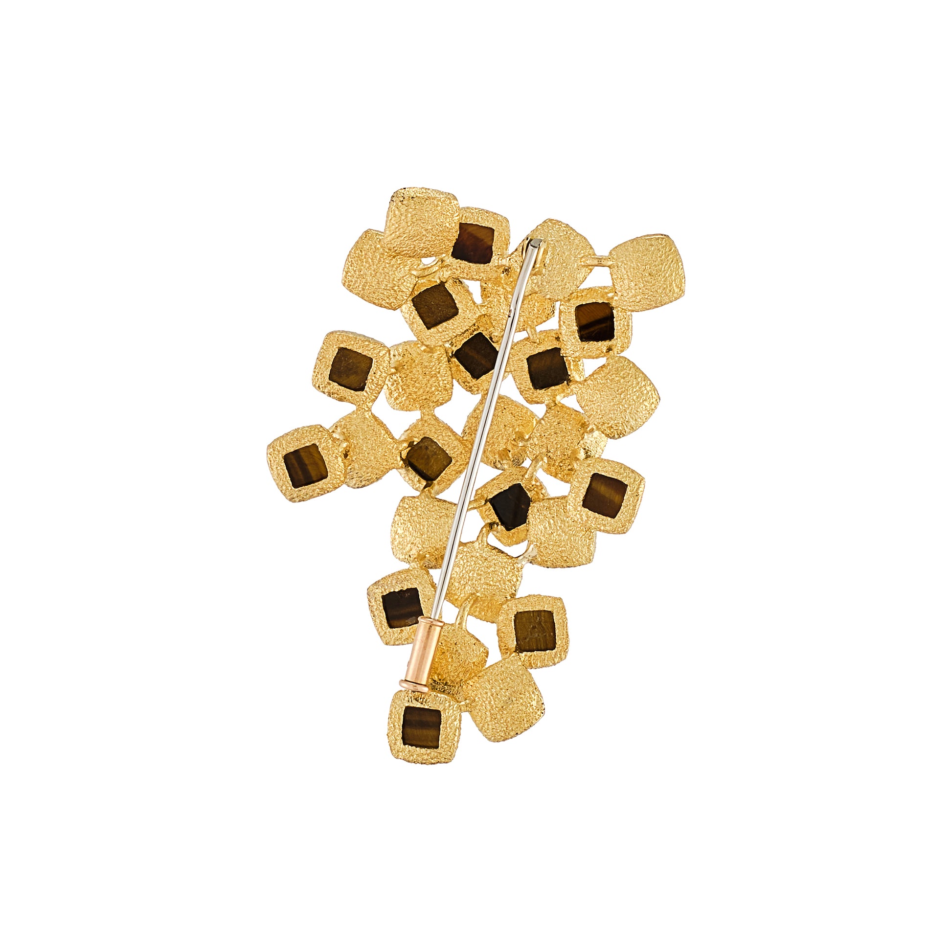 18 Kt yellow gold brooch set with tiger's eye quartz plaques