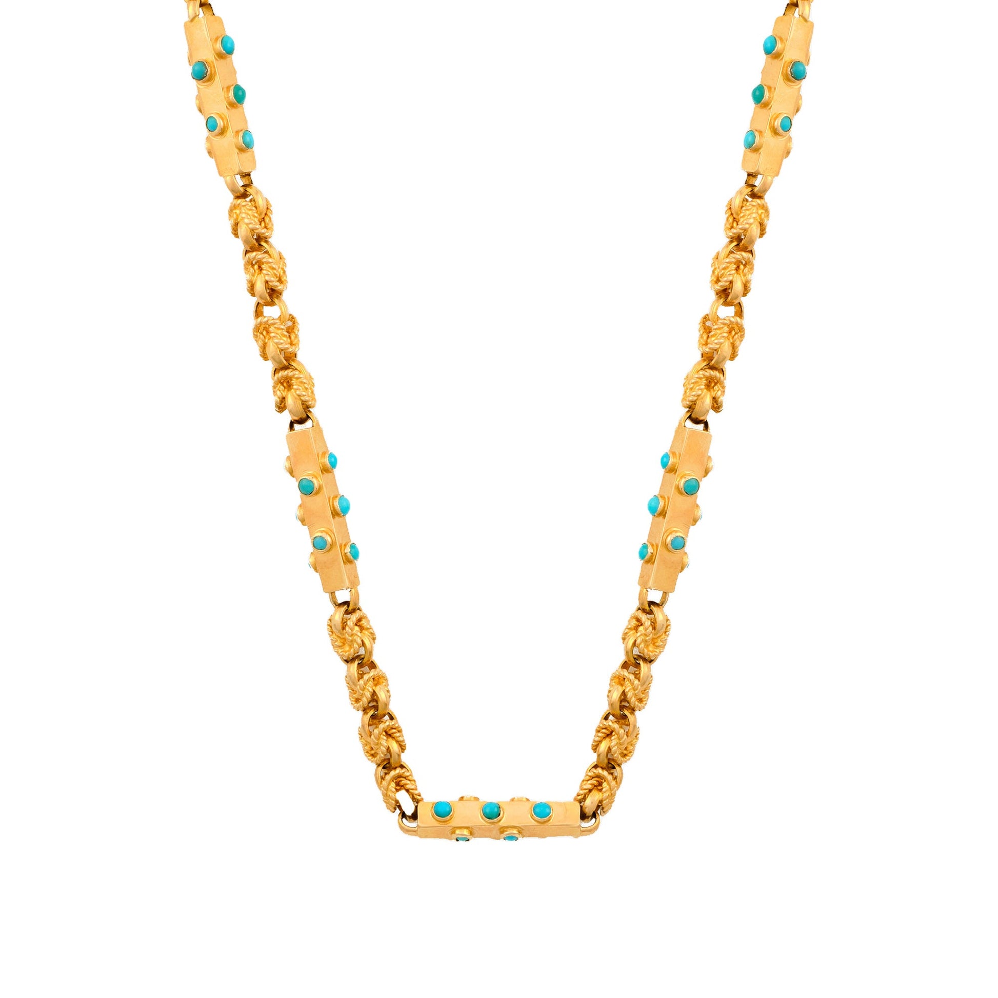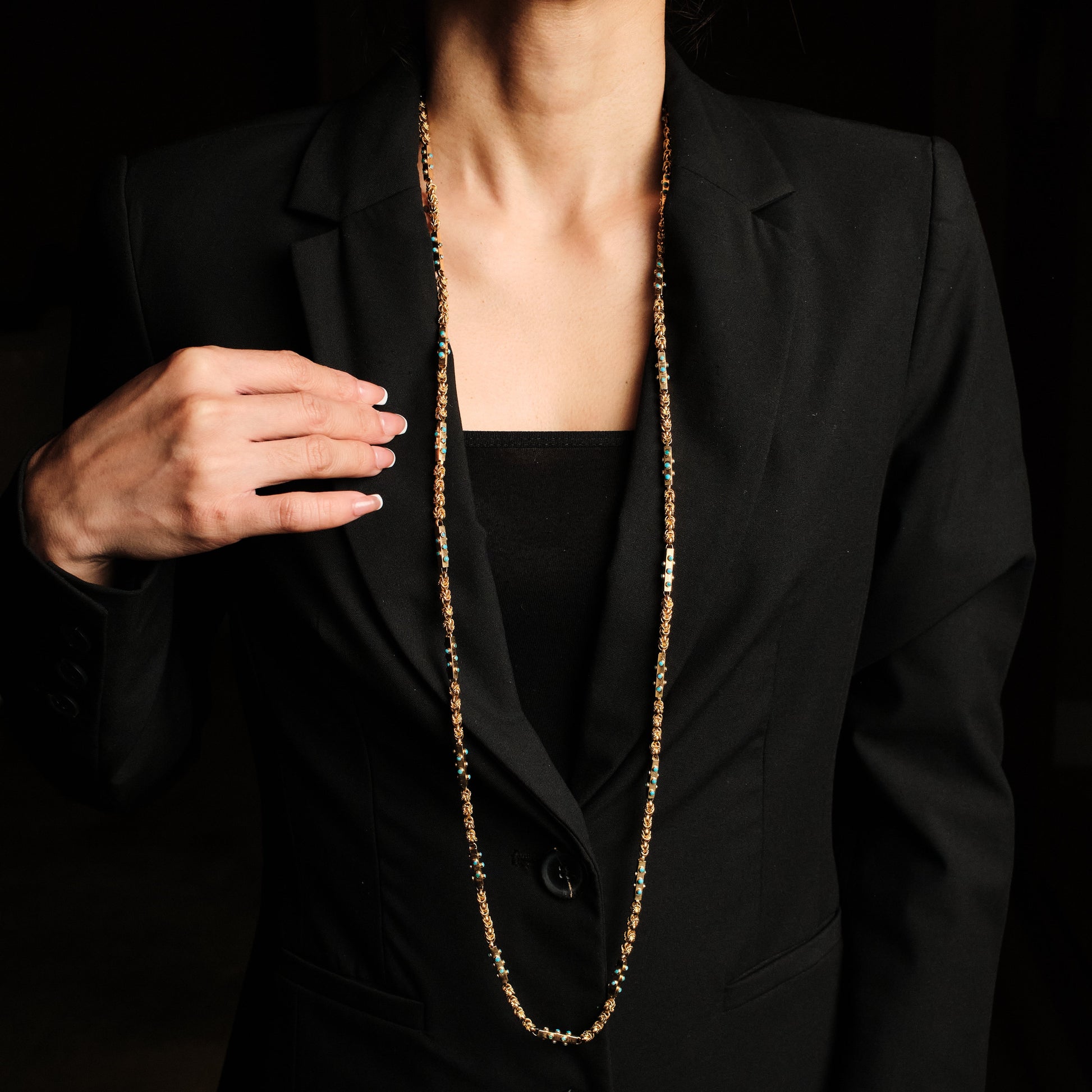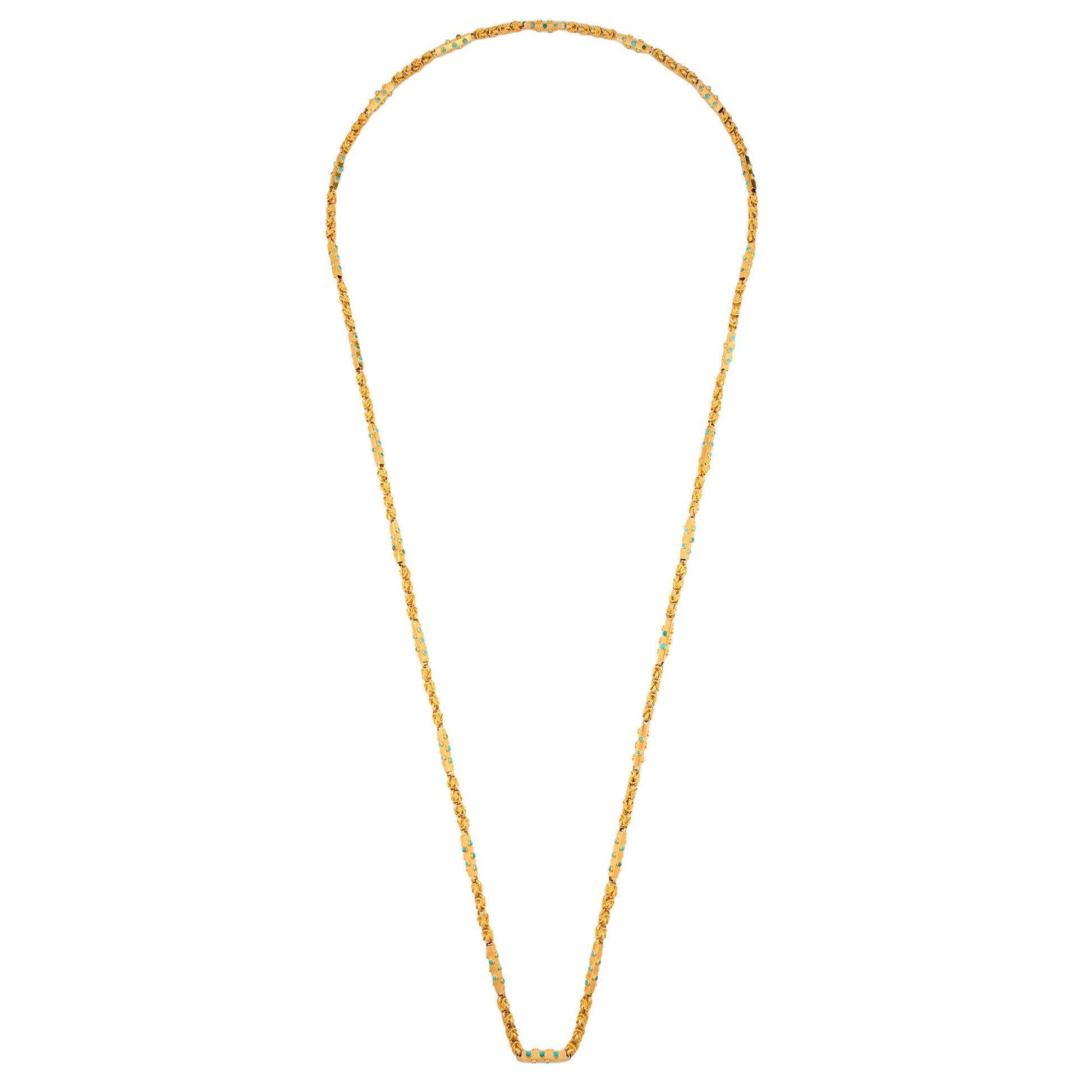 18 Kt Yellow Gold Long Chain set with Turquoise