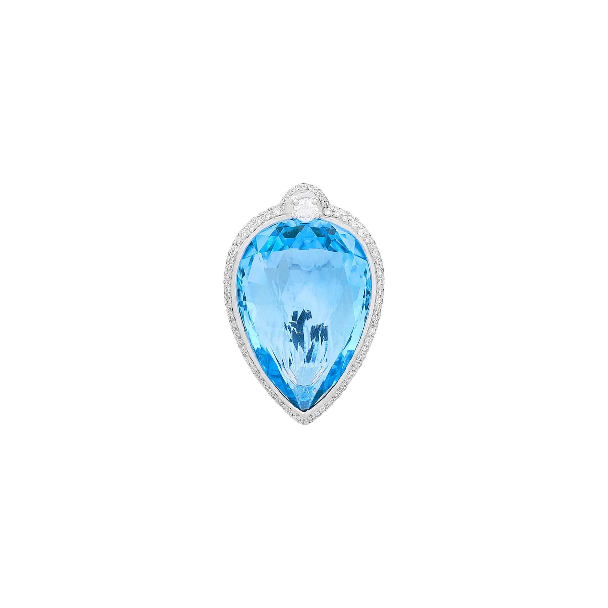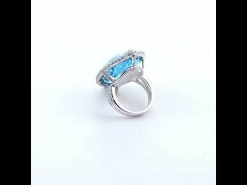 18 Kt white gold ring set with diamonds and Blue Topaz